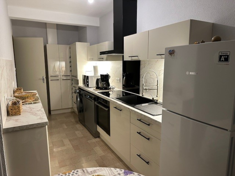 RESIDENCE 44 BD PETITE PROVENCE AU 2EME ETAGE AVEC ASCENSEUR - PARKING PRIVE ET WIF APPARTEMENT DE TYPE F2 MEUBLE ENTIEREMENT RENOVE UN HALL D'ENTREE DESSERVANT L'APPARTEMENT. UN SEJOUR/SALLE A MANGER COMPRENANT UN CANAPE . TABLE BASSE. 2 FAUTEUILS VOLTAIRE UN MEUBLE TELE AVEC ECRAN PLAT . 1 LUMINAIRE 3 BRAS. 1 TABLE + 4 CHAISES . CUISINE EQUIPEE COMPRENANT FRIGO/CONGELATEUR FOUR.MICRO-ONDES. LAVE VAISSELLE. LAVE LINGE . PLAQUE INDUCTION HOTTE ASPIRANTE .EVIER 1 BAC + EGOUTTOIR MEUBLE HAUT ET BAS DE RANGEMENT AVEC VAISSELLE . CAFETIERE. GRILLE PAIN. BOILLOIRE . LE TOUT DONNANT SUR UNE BELLE ET AGREABLE TERRASSE DE 10 M2 PLEIN SUD AVEC SALON DE JARDIN + 1 TRANSAT . 2 STORES BANNE NEUF . UNE CHAMBRE AVEC 1 LIT EN 160 + CHEVETS AVEC LAMPES . GRAND PLACARD DE RANGEMENT AVEC 1 COUETTE ET OREILLERS . UNE SALLE D'EAU AVEC MEUBLE VASQUE + MIROIR .MEUBLE DE RANGEMENT. DOUCHE A L'ITALIENNE. 1 WC SEPARE