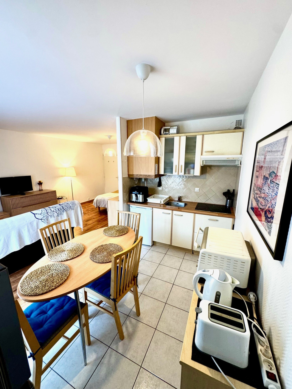 Studio Rce Les Thermes Bt B2 N° 32 au 1 étage à Amélie les Bains. Avec un box couvert n°20 sous le batiment A.. Proche des Ets Thermaux et du centre ville.. . Capacité d'accueil : 2 adultes. Une pièce principale avec deux portes fenêtres donnant sur la rue des thermes .. . Exposition EST - Petit balcon.. . Un lit en 140 + 1 chevet, 1 table basse, 1 commode + écran plat , 1 canapé . 1 halogène, placard de rangement,1 coin cuisine avec 1 évier inox + égouttoir, 1 plaque vitro-céramique 4 feux, 1 hotte aspirante, 1 réfrigérateur / congélateur, 1 mini four, 1 air flyer meubles de rangement, 1 table ronde +4 chaises, 1 meuble vaisselier . Une salle de bains avec baignoire, lavabo,lave linge Un wc particulier. WIFI . Catégorie Confortable. Chauffage électrique. Situation/thermes : 50m. Situation/centre ville : 100m. Niveau 1°. Ascenseur oui. Orientation Est. Surface 32 m2. Box couvert n°20. Catégorie confortable. . Le linge de maison n'est pas fourni..