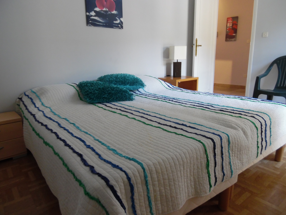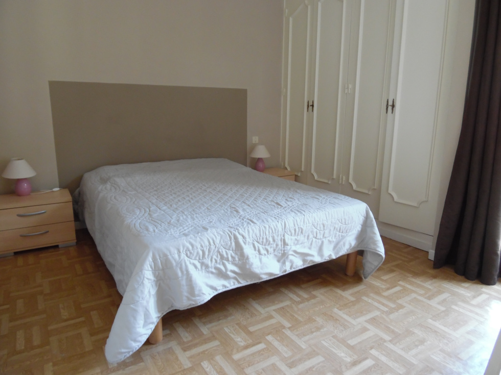 Rce 32 Bd Petite Provence. 3° étage avec ascenseur.et wifi Quartier résidentiel , très ensoleillé avec une magnifique vue sur les montagnes environnantes.. Bel Appartement de type F3 rénové . . Catégorie CONFORTABLE . . Capacité d'accueil : 4 adultes . . Une entrée desservant l'appartement avec console + grande glace.. . Un séjour avec une grande porte fenêtre donnant sur grande loggia de 10m2 - plein sud.. Un grand bahut,1 meuble avec livres , 1 lampe, tableaux, 1halogène, 1 clic clac, 1 table basse, 1 table + 4 chaises, 1 meuble télé+ télévision couleur.. . Une cuisine équipée avec porte fenâtre donnant sur loggia, 1 évier 1 bac + égouttoir, 4 plaques vitro+ hotte aspirante, 1 four, 1 réfrigérateur /congélateur,1 micro-ondes, meuble haut et bas de rangement, lave linge.. . Une chambre avec 2 lits jumeaux + 2 chevets et 2 lampes, porte fenêtre, 2 grands placards de rangement.. . Une chambre avec 1 lit en 140 , 2 chevets avec lampes, 1 commode, 1 porte fenêtre , 2 grands placards de rangement .Une salle d'eau avec douche a l'italienne, meuble vasque + miroir . wc particulier. Chauffage collectif. . Situation/thermes: 700 m. Situation/centre v: 500m. . Orientation : SUD/ NORD. . Surface : 60 m2 + loggia. . Possibilité de se garer. .