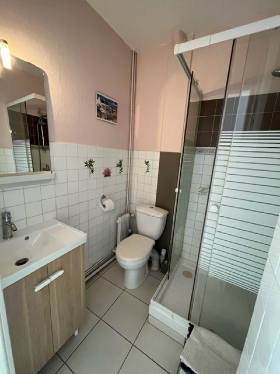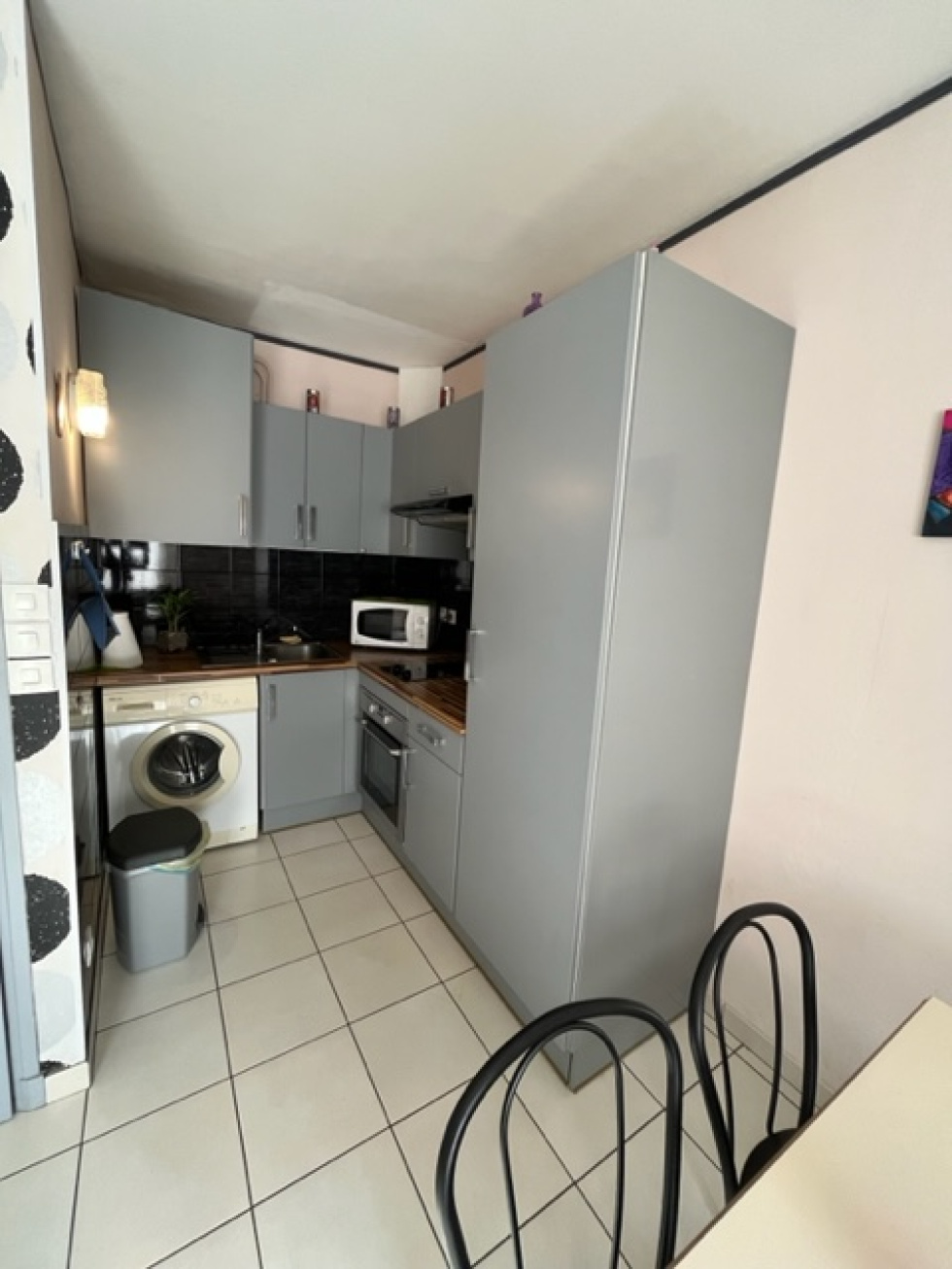 Beau studio Résidence Le Castellane - 25 rue castellane. 1 er étage avec ascenseur. . un couloir desservant le studio . une salle d'eau avec cabine de douche meuble vasque , miroir , wc . une coin cuisine tout équipé avec un refrigerateur - 2 plaques , 1 micro-ondes - 1 four - 1 lave linge placard de rangement - hotte aspirante . une table + 4 chaises - placards de rangement . 1 lit en 140 - 1 chevet + lampe - 1 banquette 2 places une télévision écran plat. . un balcon avec salon de jardin. . Proches des ETS THERMAUX. . AVEC PARKING PRIVE . . WIFI